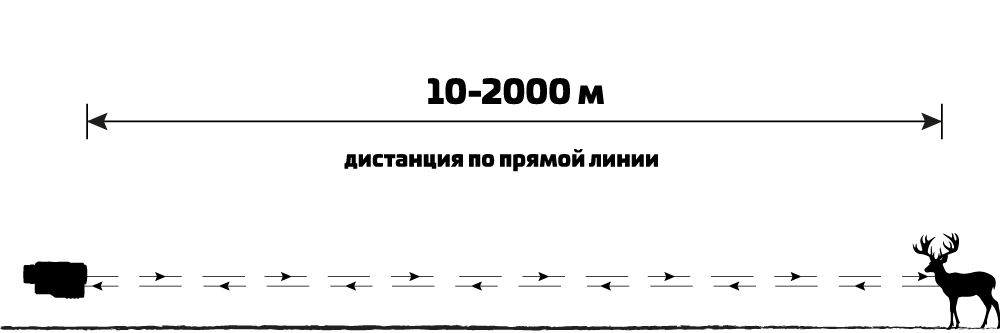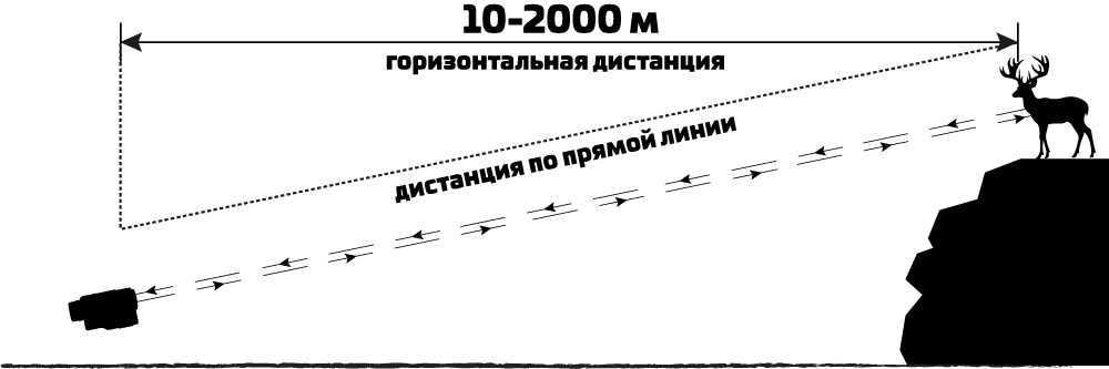 Это базовый и самый часто используемый режим. Прибор мгновенно определяет расстояние до цели по прямой линии. Такой режим актуален при стрельбе на открытой местности, когда нет выраженных перепадов высоты между стрелком и целью.