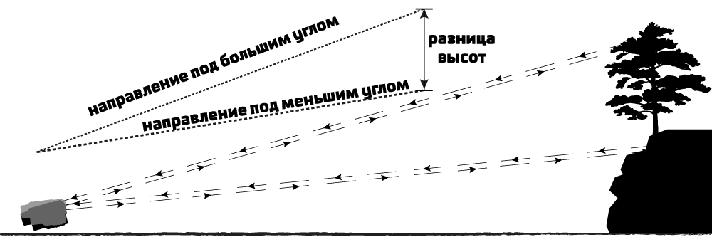 Функция, тесно связанная с предыдущими режимами. Прибор показывает разницу по высоте между двумя лучами разных углов наклона. Для определения высоты дальномеру требуется раздельно сделать замеры до двух точек.