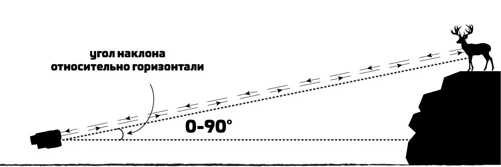 Дальномер способен отображать угол наклона относительно цели. Это важно не только для стрельбы, но и для общего понимания геометрии пространства — например, при перемещении по сложному рельефу или оценке позиции зверя.