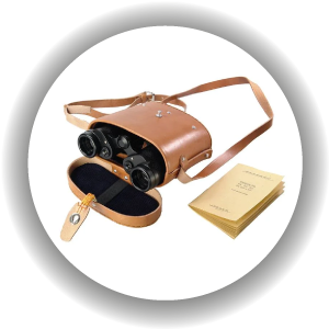 Бинокли комплектуются жестким кожаным футляром на пружинной застежке и плечевым ремнем. Футляр надежно защищает прибор при хранении и транспортировке и дополняет аутентичный внешний вид серии.