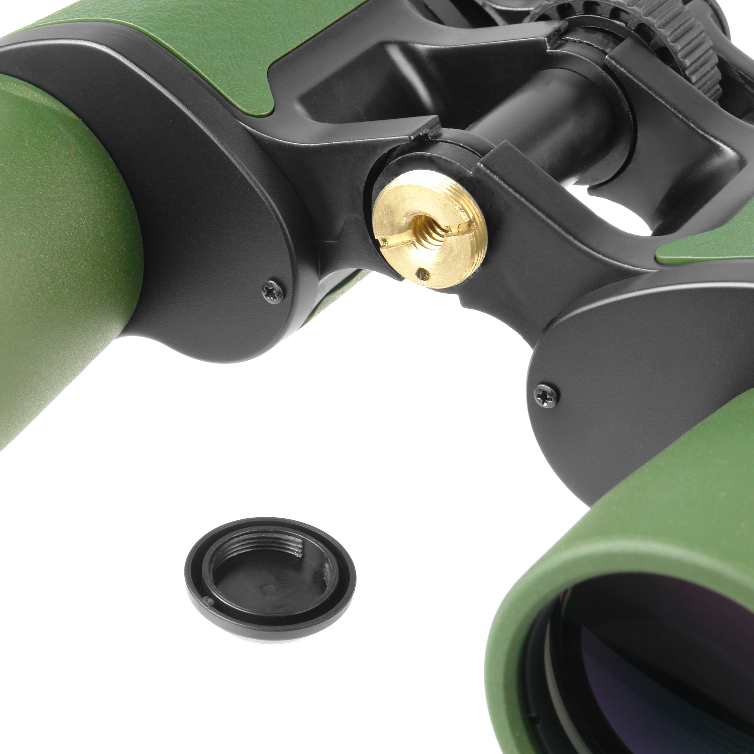 Для длительных наблюдений из статичного положения бинокль можно установить на трипод – для этого в передней части имеется резьбовое отверстие 1/4". Для использования во время движения в комплект добавлен широкий и мягкий ремень. Вес бинокля – всего 620 г, что обеспечивает удобство при пеших переходах и снижает нагрузку на руки.