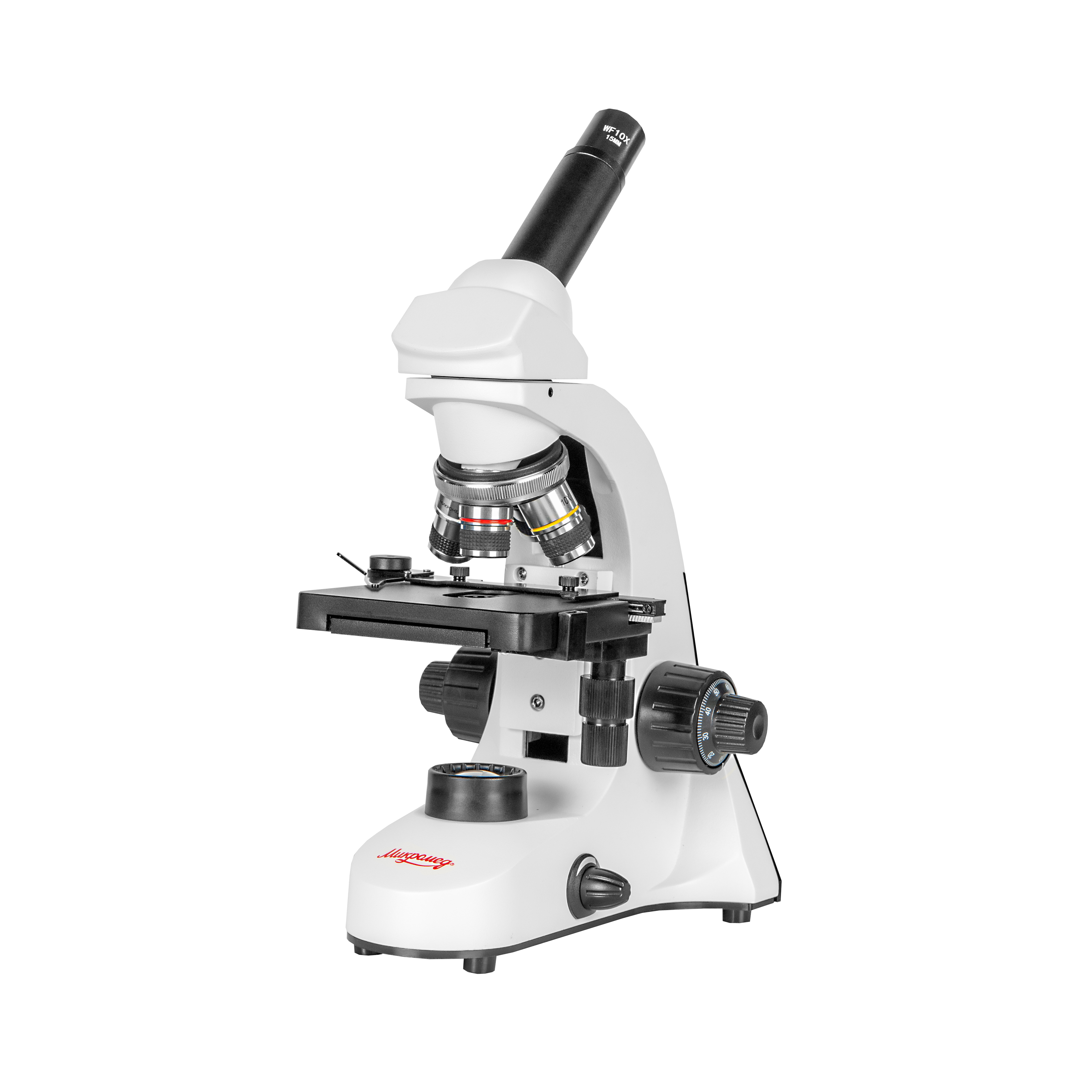 - Объектив ахромат 40x (подпружиненный, установлен)