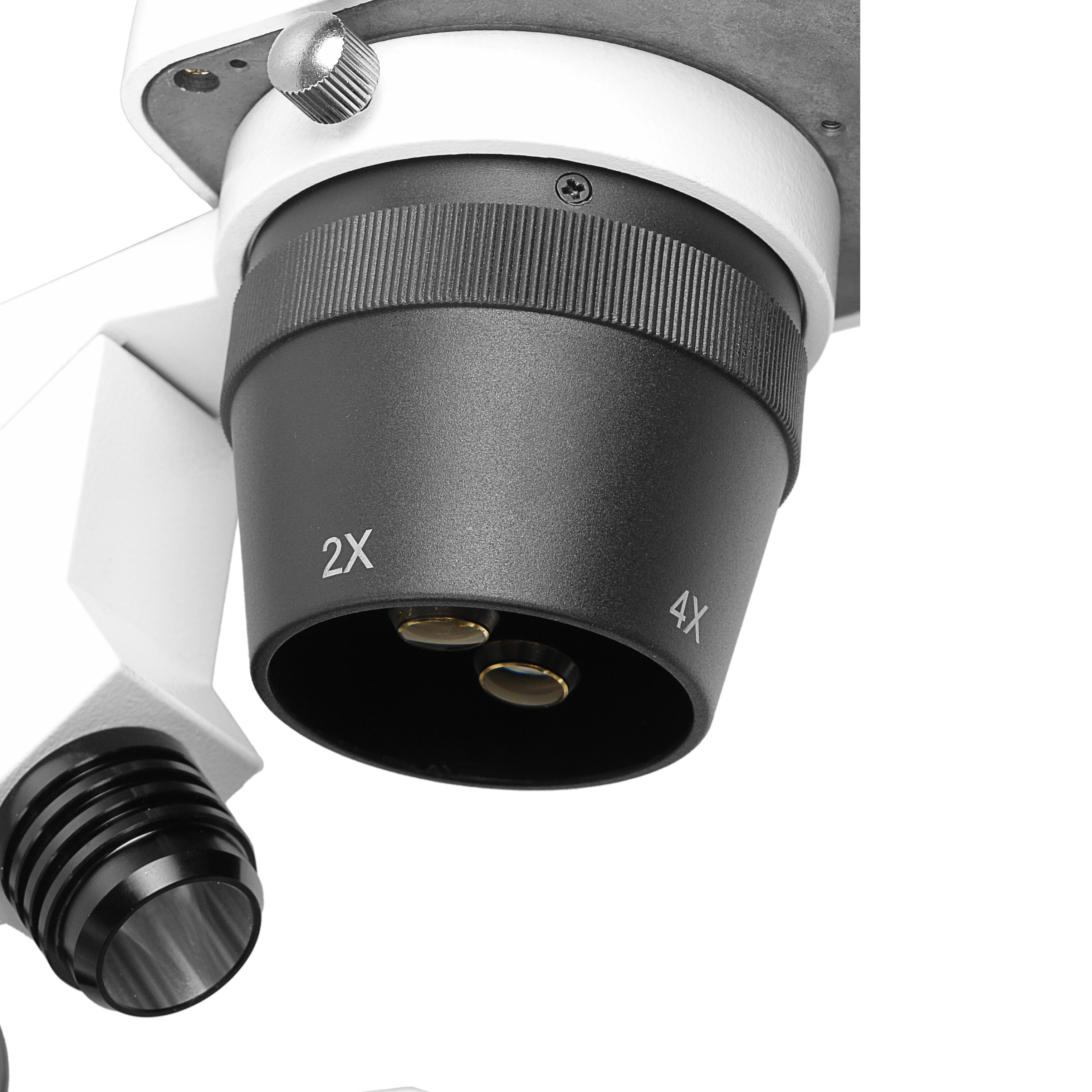- Полностью металлическая конструкция - основание микроскопа, корпус визуальной насадки и штатив изготовлены из алюминиевого сплава.