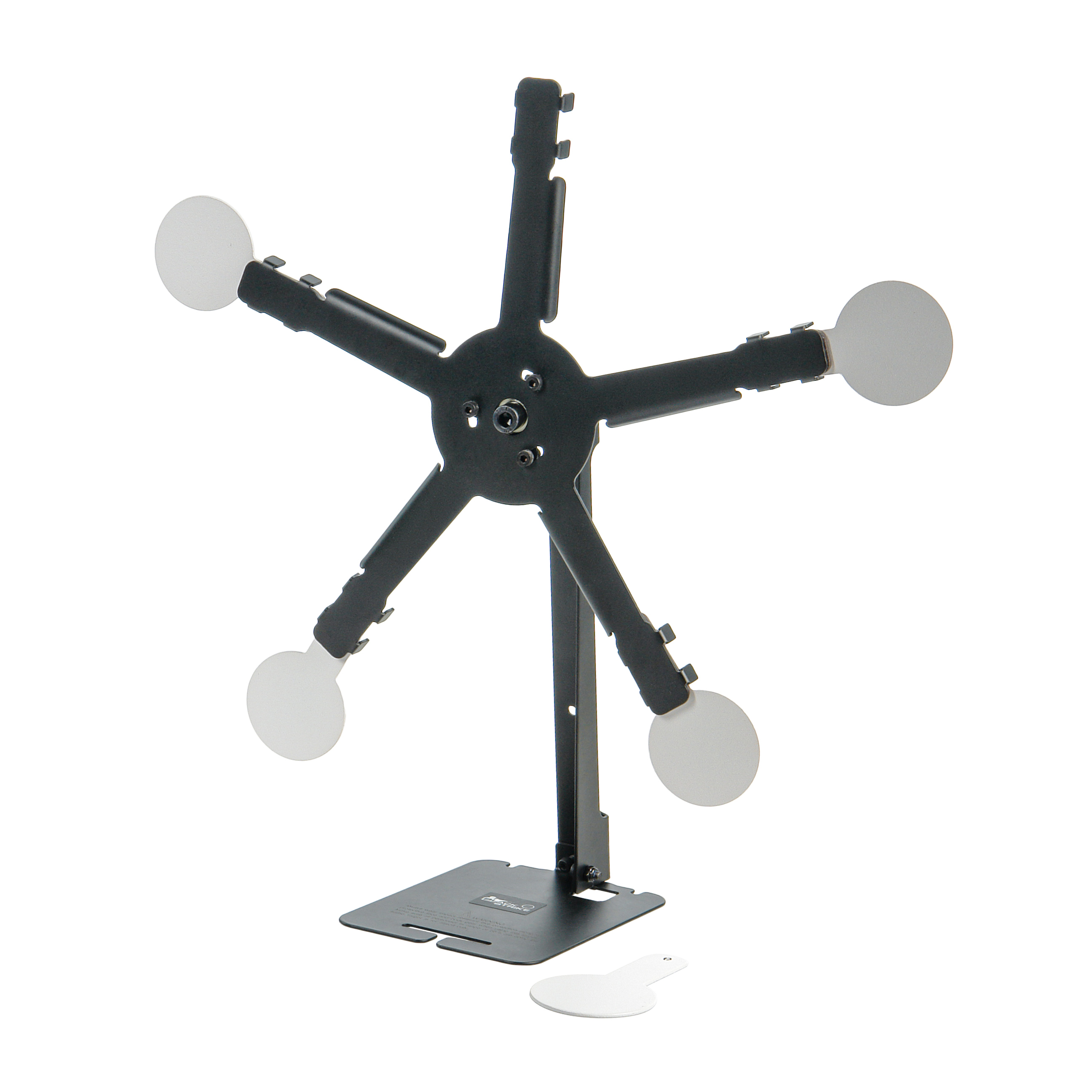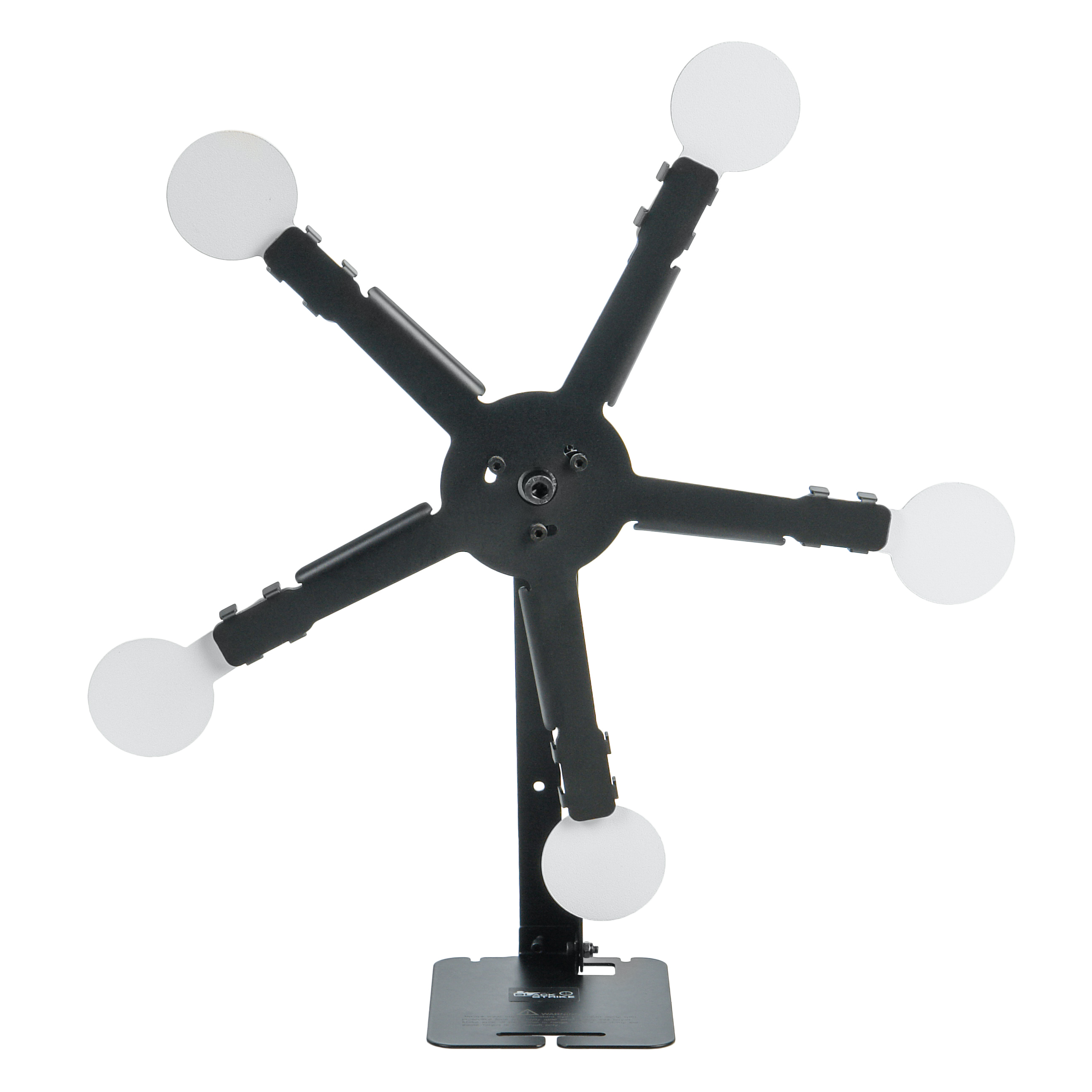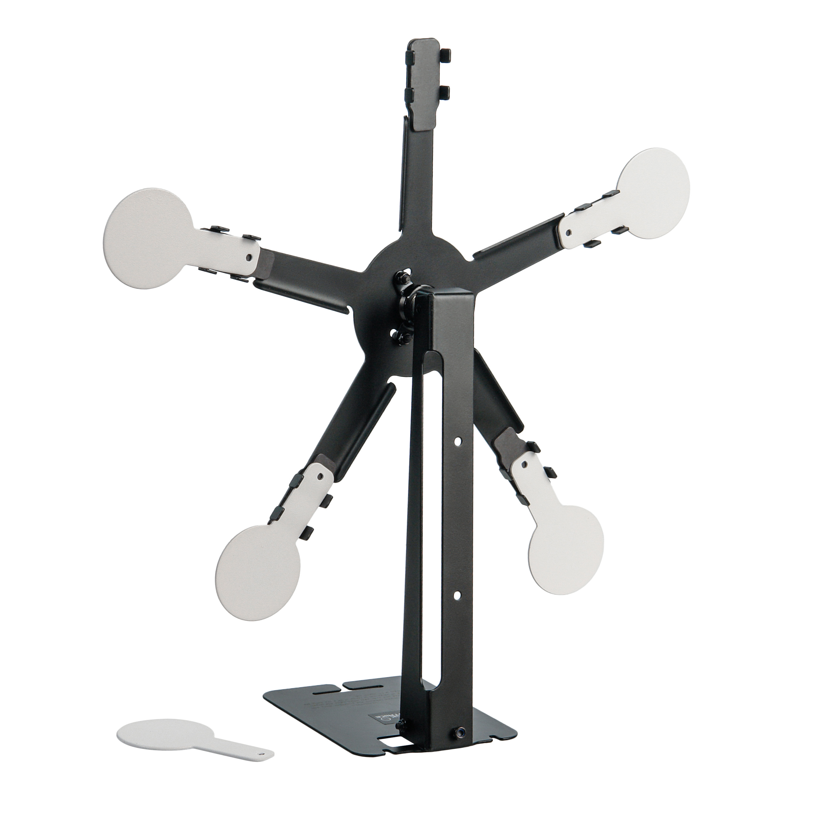Разборная вращающаяся конструкция, 5 мишеней (диаметр 52 мм, толщина 1.5 мм). Магнитное крепление. Для пневматического оружия до 3 Дж.