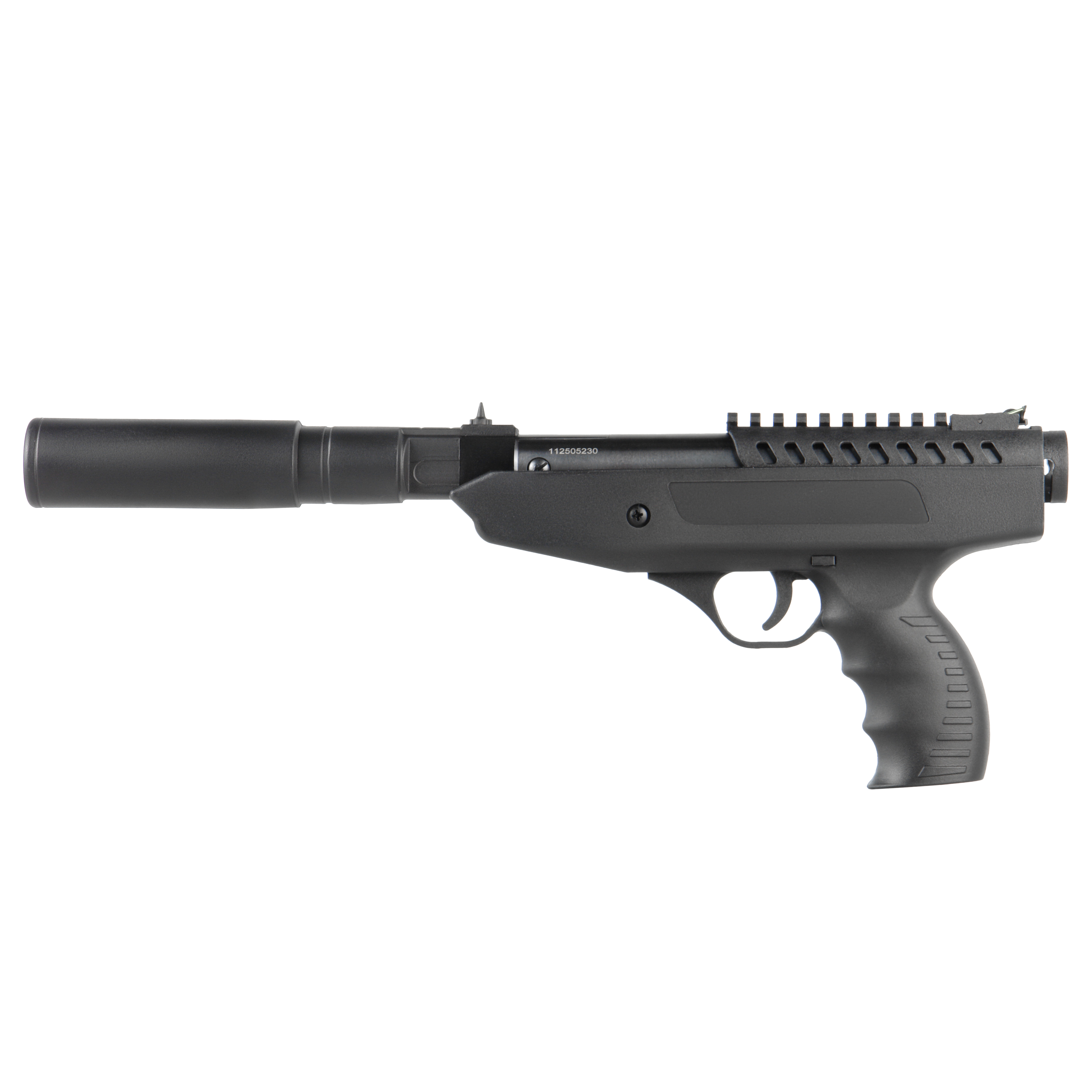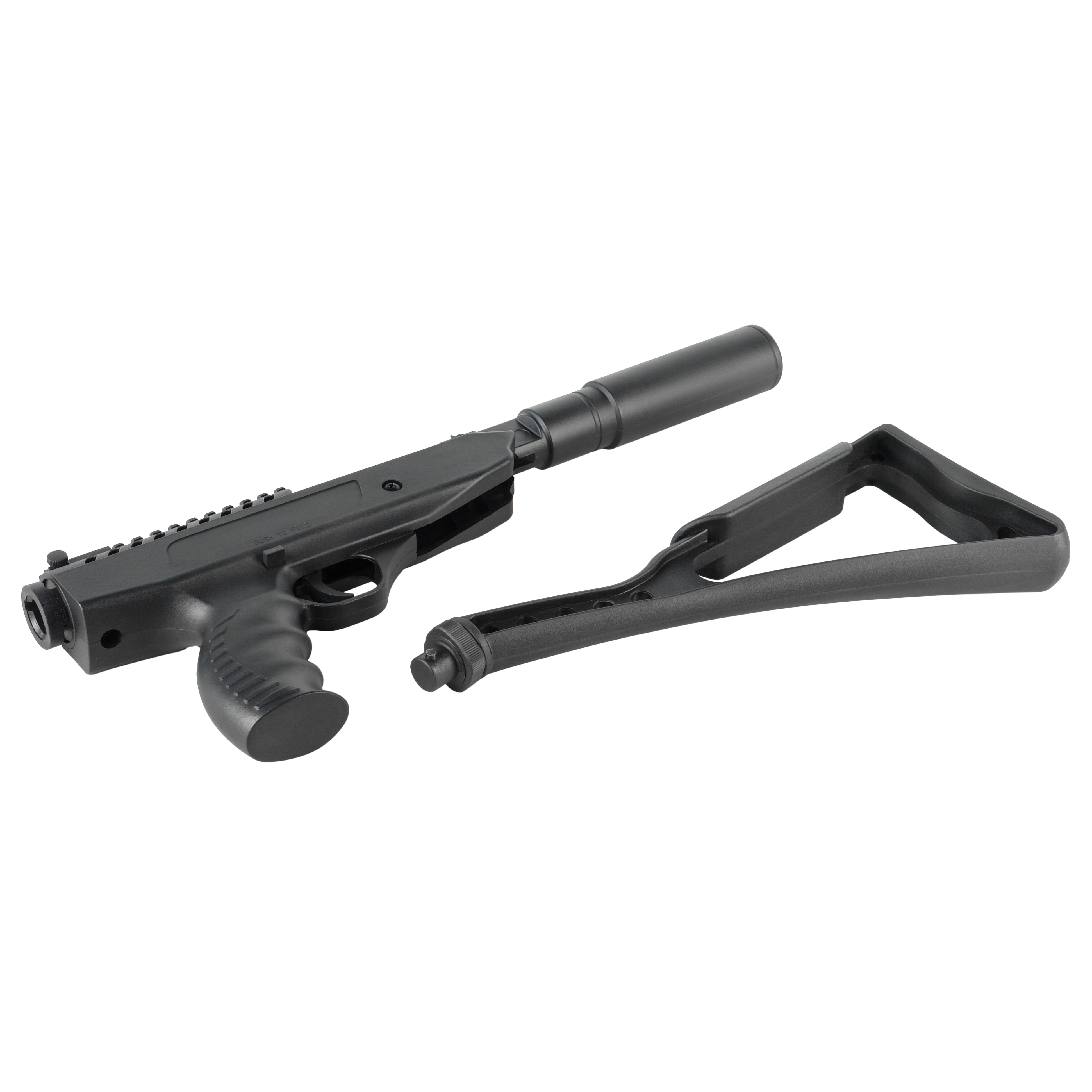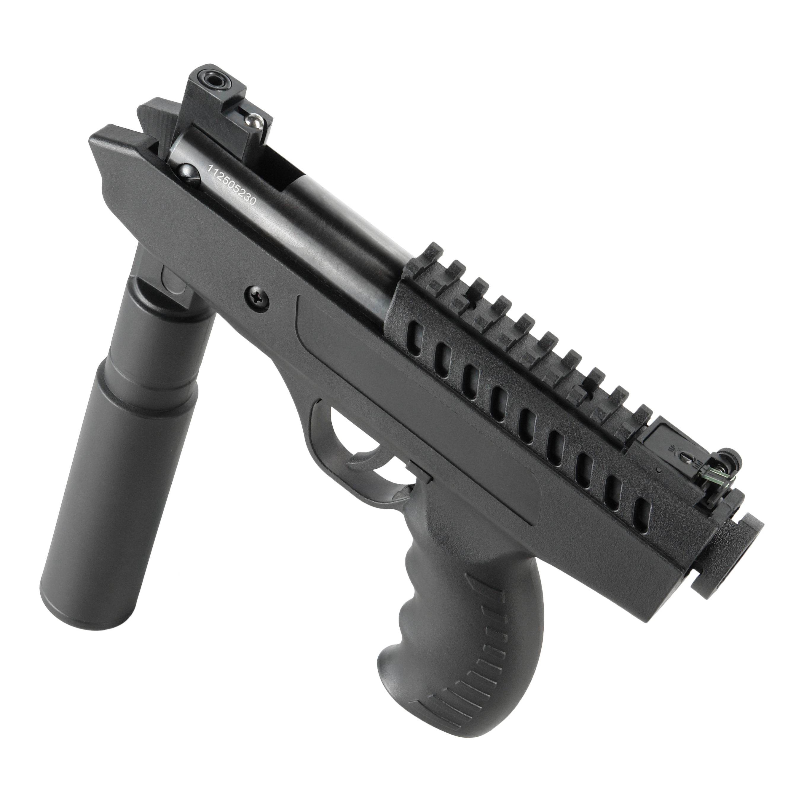 Пружинно-поршневой пистолет калибра 4.5 мм, энергия до 3 Дж, взвод "переломом" ствола, съемный рамочный приклад, планка Пикатинни 21 мм, ручной предохранитель, металлический ствол.