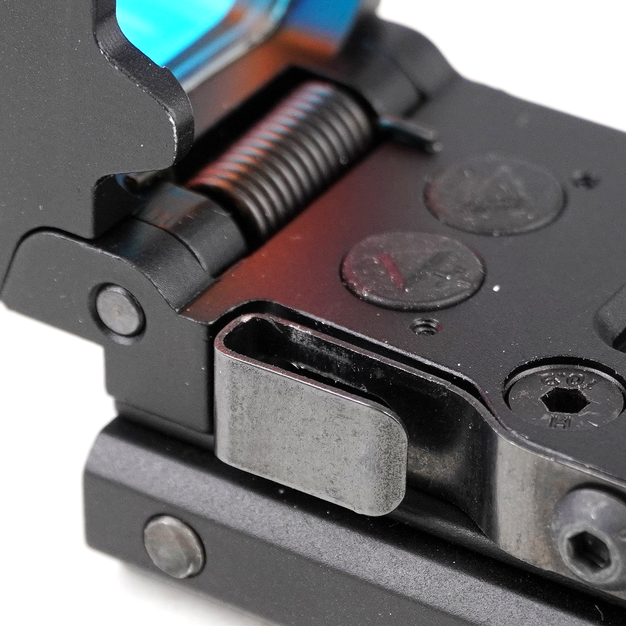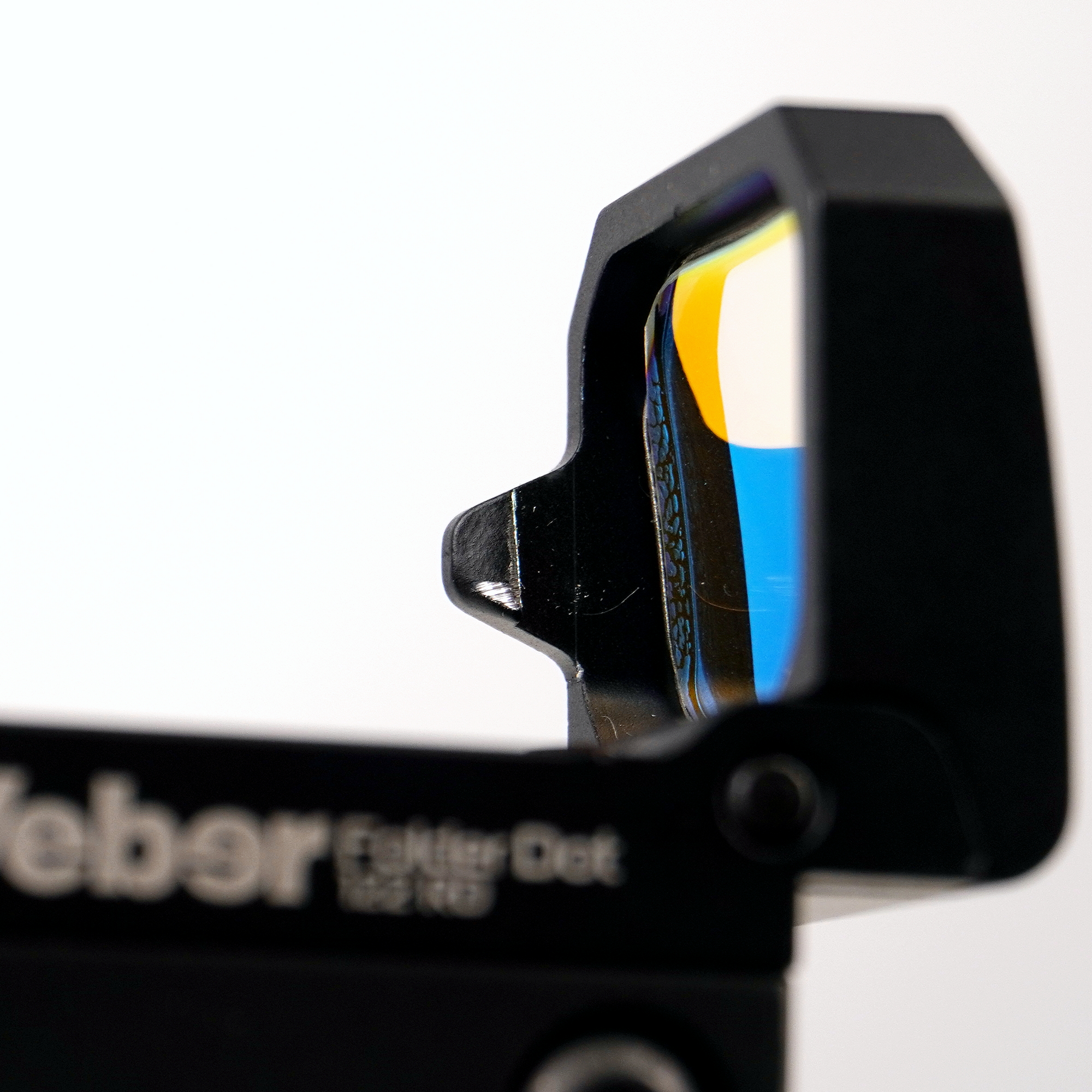 Коллиматорный прицел открытого типа со складной линзой-объективом, размер окна 22х16 мм, многослойное просветляющее покрытие, корпус из анодированного алюминия, прицельная марка – красная точка 3 моа с регулируемой яркостью. Предназначен для огнестрельного гладкоствольного оружия до 2100 Дж, с нарезным стволом – до 3800 Дж, пневматического пружинно-поршневого оружия до 7,5 Дж.
