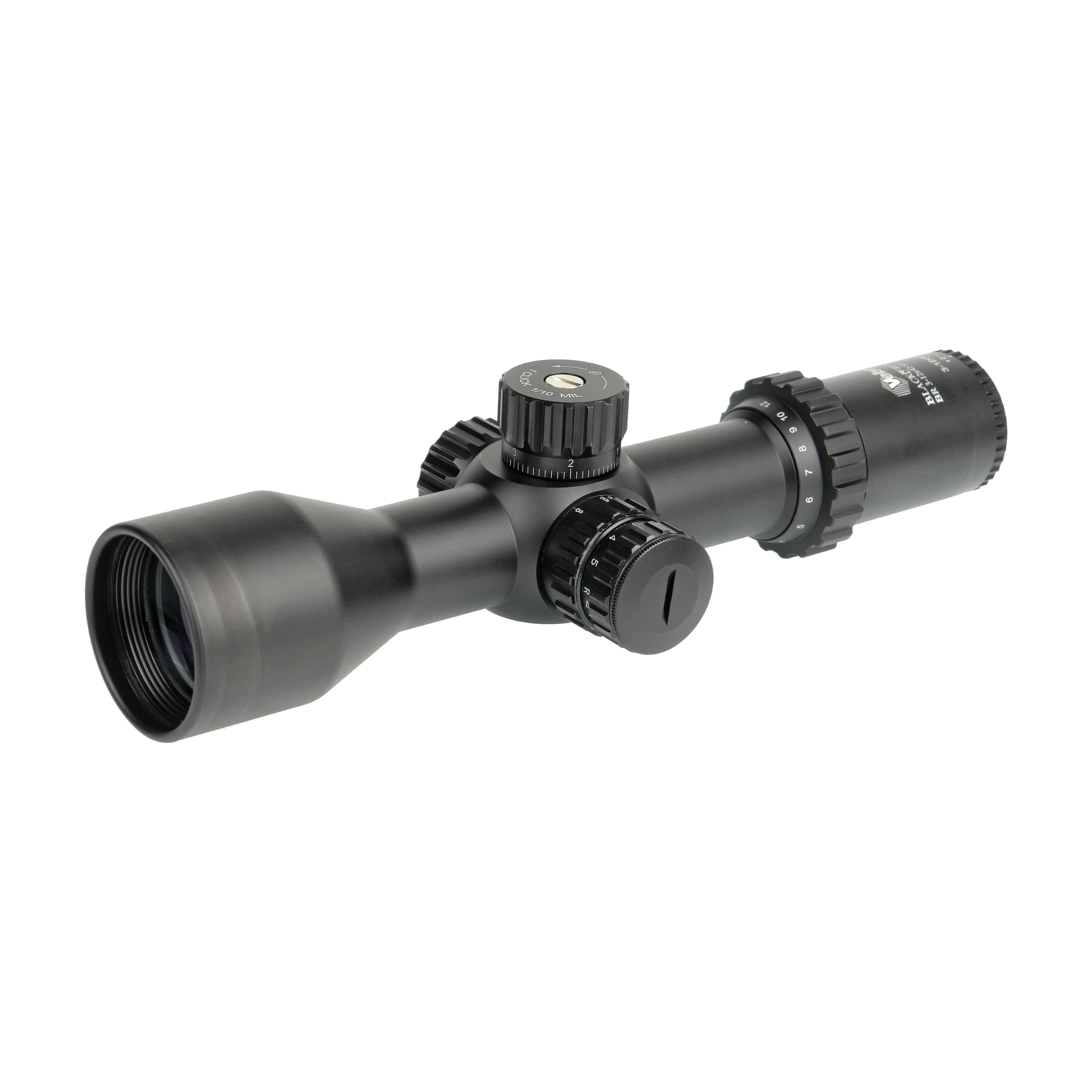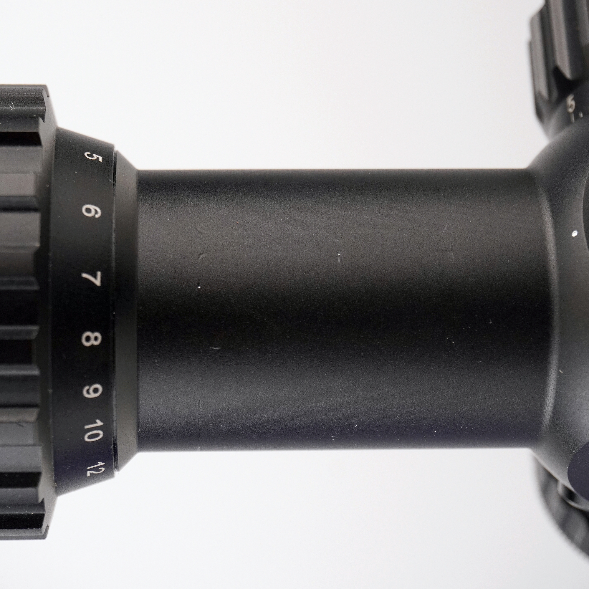 Светосильный прицел линейки Black Russian, кратность 3–12х, объектив 42 мм, боковая отстройка параллакса (SF), масштабируемая сетка (на стекле, расположена в первой фокальной плоскости (FFP)), зеленая/красная подсветка. Защита от пыли и влаги IP67, для огнестрельного оружия с дульной энергией до 4400 Дж и пневматического – до 15 Дж.