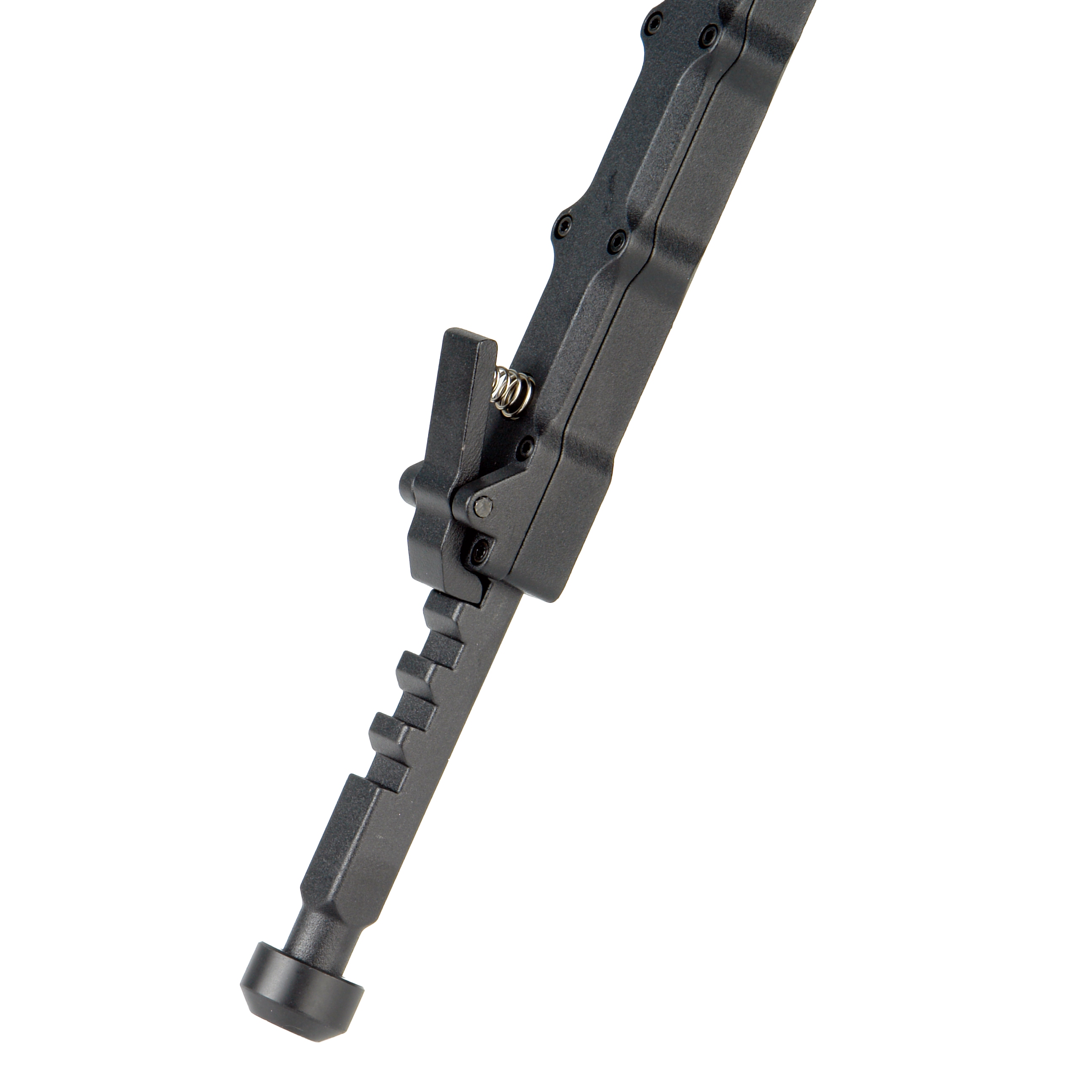Быстроскладные сошки устанавливаются в одно из пяти положений с помощью кнопочного фиксатора. Максимальная высота опорных ног (от поверхности до базы) - 22 см, минимальная – 18 см.