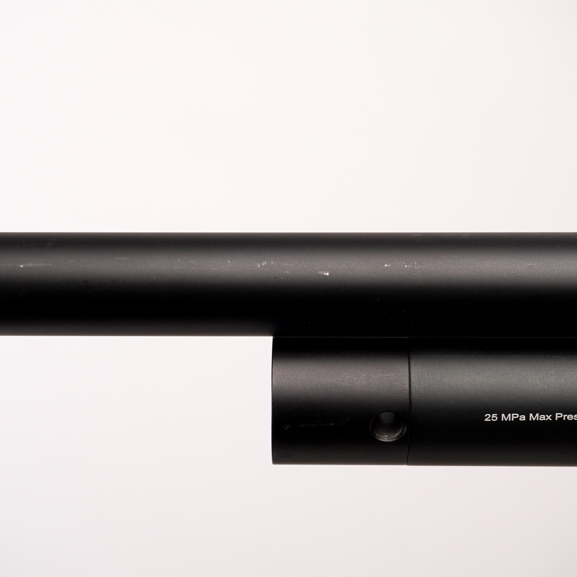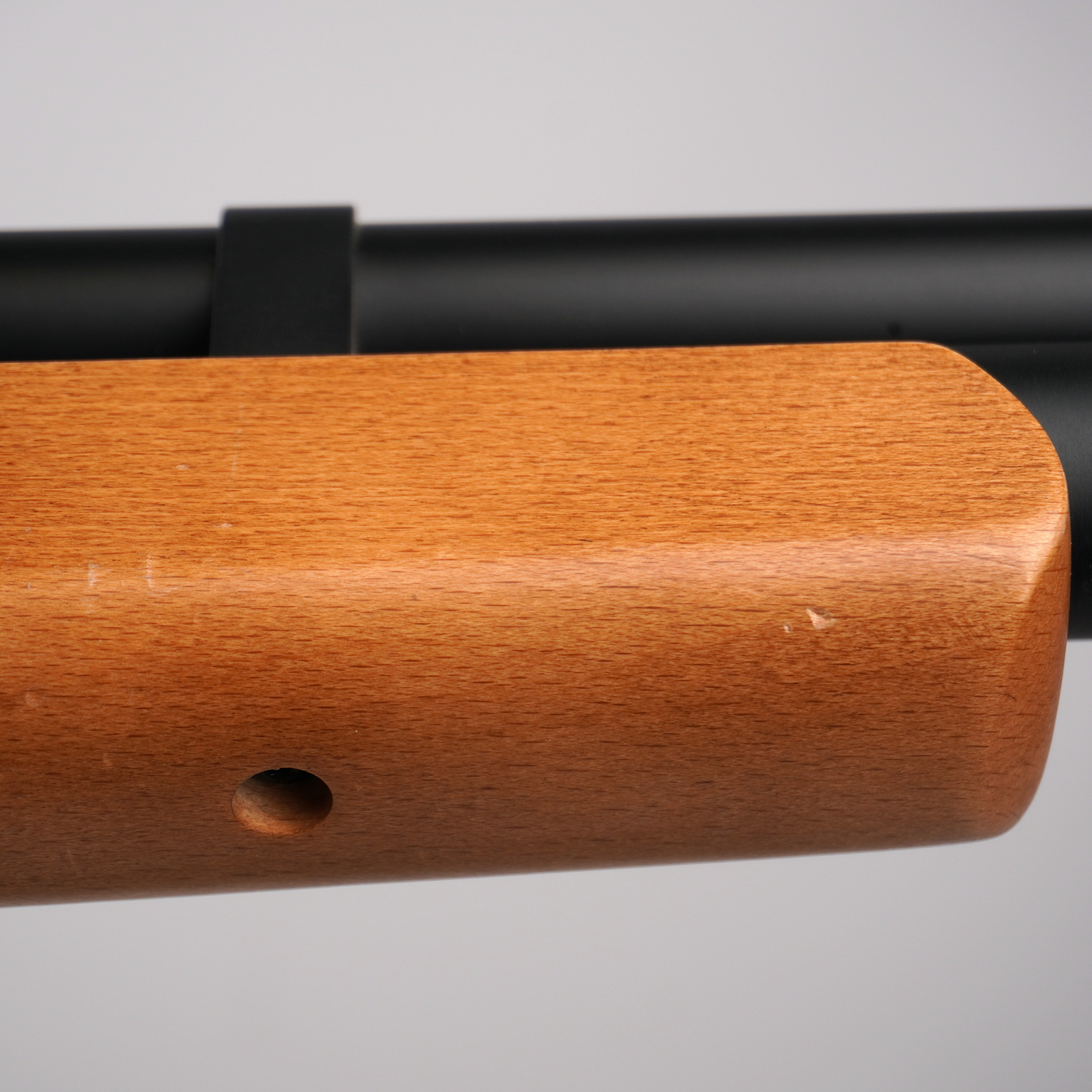 Пневматическая многозарядная винтовка с предварительной накачкой воздуха (PCP), калибр 4,5 мм, длина ствола 535 мм, ручной предохранитель, ширина планки ласточкин хвост 11 мм. Комплектуется чехлом, полуавтоматическим магазином барабанного типа емкостью 13 пуль, однозарядным блоком подачи пули в казенник, штуцером для насоса и уплотнительными кольцами.